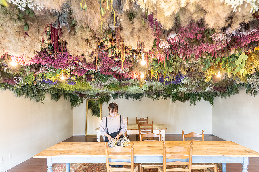 Goophyでは生花をドライフラワーにする作業を、障がい者施設へ委託することにより、障がい者の継続的な就労支援を行っております。
