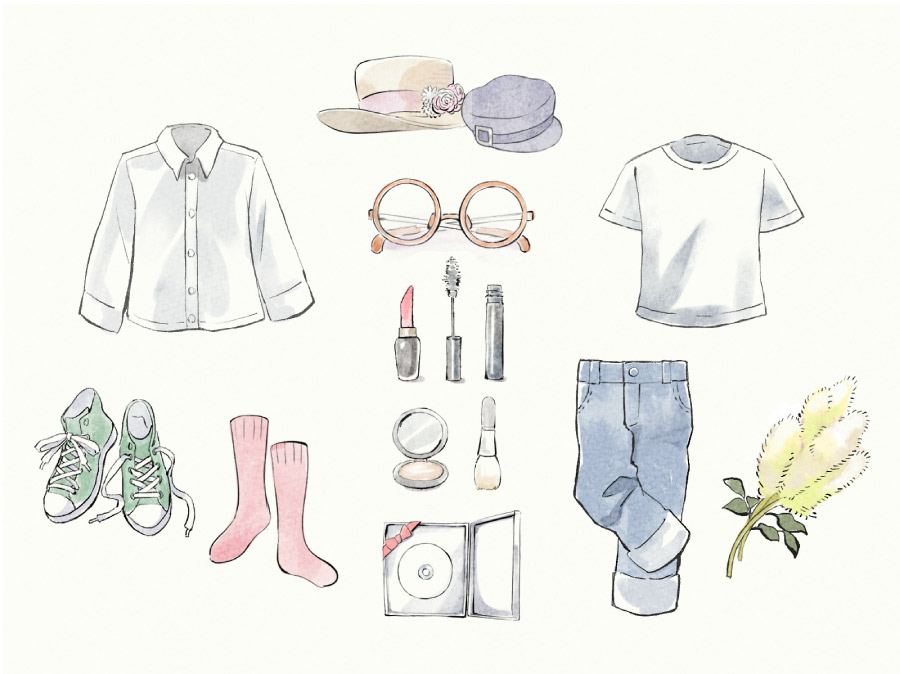 衣装レンタル(有料) / 小物一式レンタル / 衣裳コーディネート / 写真の色・明るさの調整